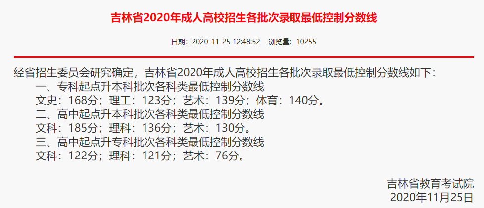 吉林省历年成考录取分数线-尊龙凯时人生就是搏