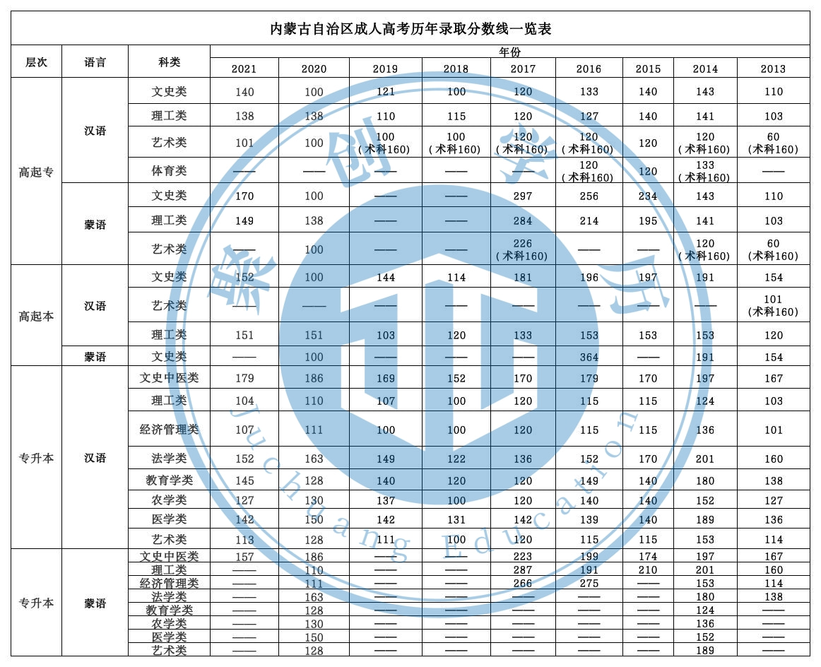 内蒙古成人高考历年录取分数线-尊龙凯时人生就是搏